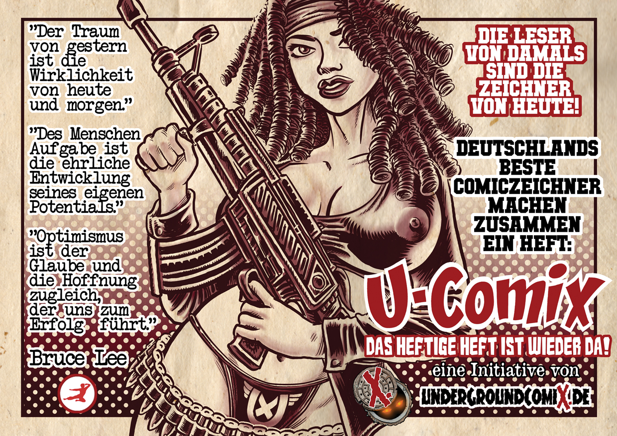 Im Pakt mit Robert Makowski, Stephan Probst und seiner Agentur DRIVE und dem Comicvertrieb “Comics und Spiele Berlin” von Norbert Frase-Gerhold wagt undergroundcomix.de das Abenteuer, U-Comix wieder aufleben zu lassen.